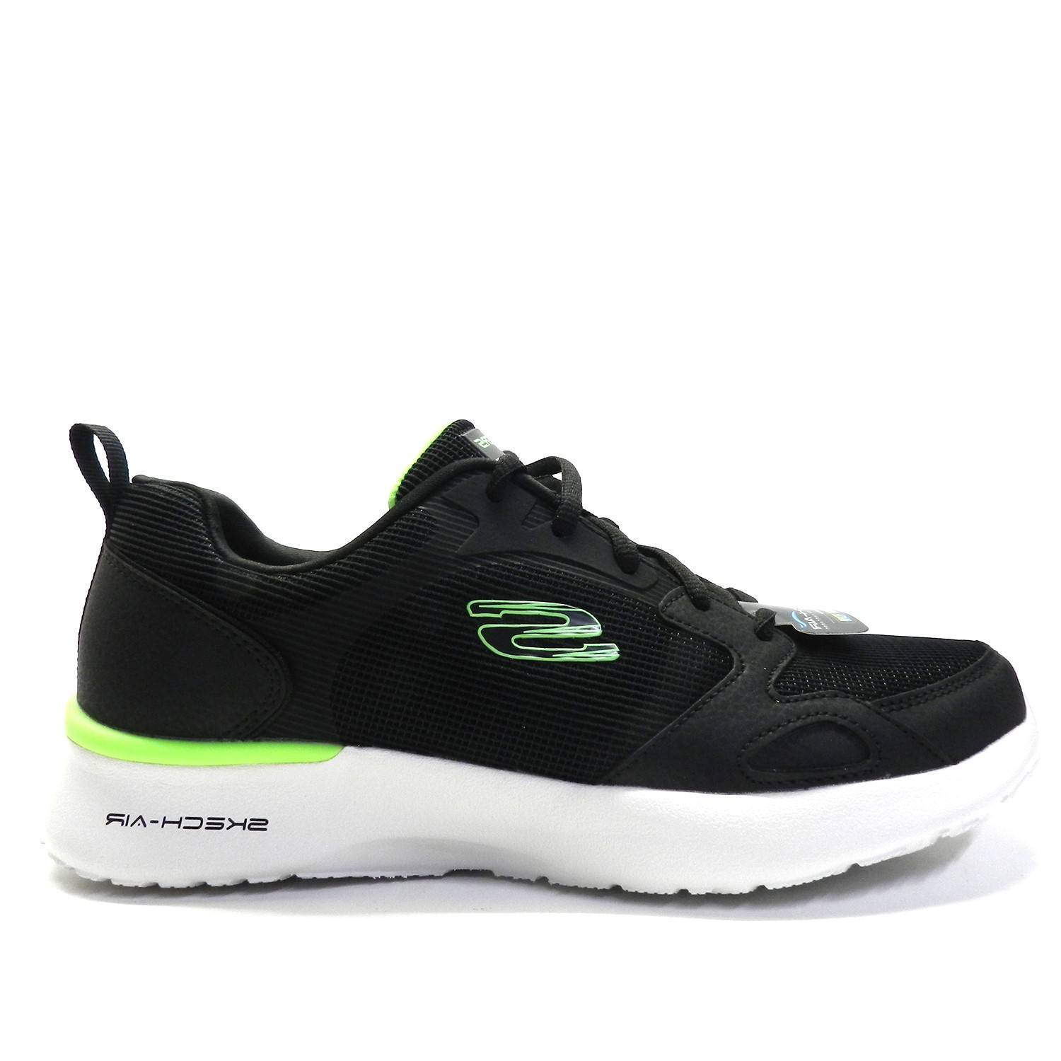 Zapatillas de la marca Skechers, modelo Air Dynamight en color negro. Zapatillas deportivas elaboradas en tejido sintético y malla. Plantilla de Memory Foam con amortiguación, mediasuela con cámara de aire Skech-Air, suela de goma flexible con tracción. Talón de 3,2 cm
