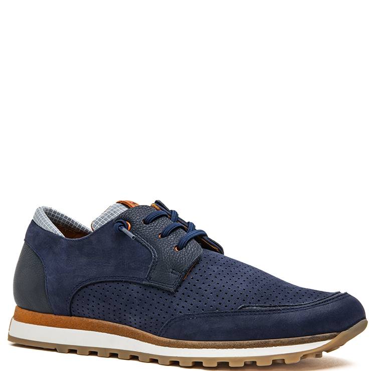 Zapato deportivo elaborado en piel y tejido en color azul con detalles estampados en contraste. Cierre con cordones elásticos. Cómoda suela bicolor elaborada en goma EVA.