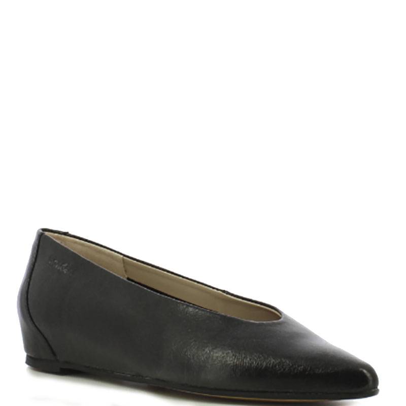 Bailarinas elaboradas en piel lisa. Punta afilada. Suela de Cuerolite con cuña interna de 2,5 cm. Plantilla interna de MemoryGel.
