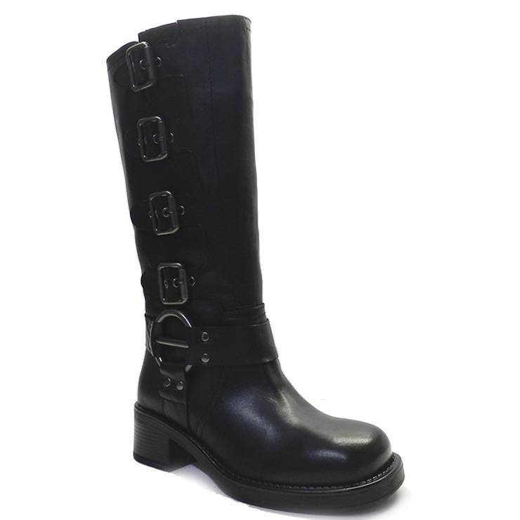 Bota de piel estilo motero con detalle de hebillas en la parte lateral.