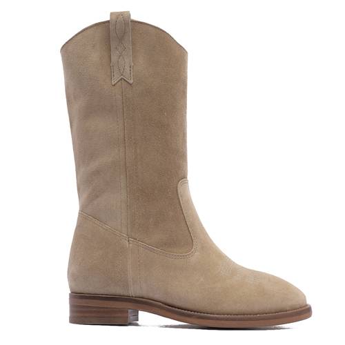 Botín de la marca Alpe, modelo 2254 en color arena. Botín de estilo campera de caña alta elaborada en piel de serraje con punta de forma redondeada. Cómoda plantilla interior almohadillada. Suela flexible y antideslizante, con tacón de 2 cm de altura.