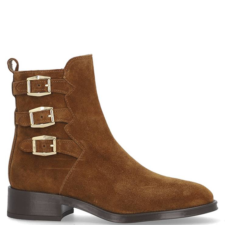 Botín elaborado en piel (baby silk). Suela antideslizante y puntera redonda. Cierre mediante triple cremallera. Tacón ancho de 3,5 cm.