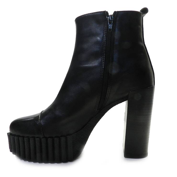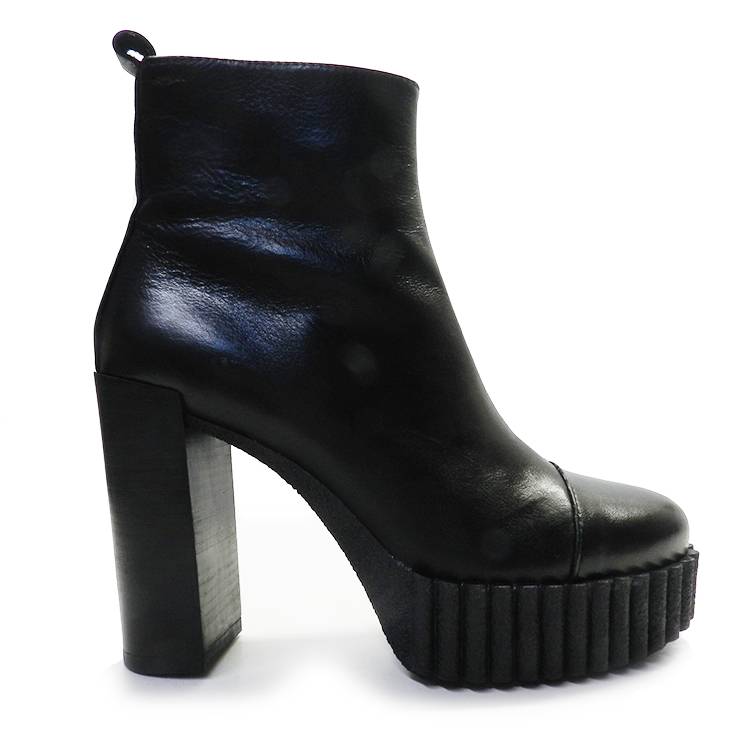 Botín de la marca Alpe modelo 4547 en color negro. Botín de tacón elaborado en napa con puntera. Plataforma delantera de 3 cm y tacón de 10 cm. Suela de goma con detalle ondulado.