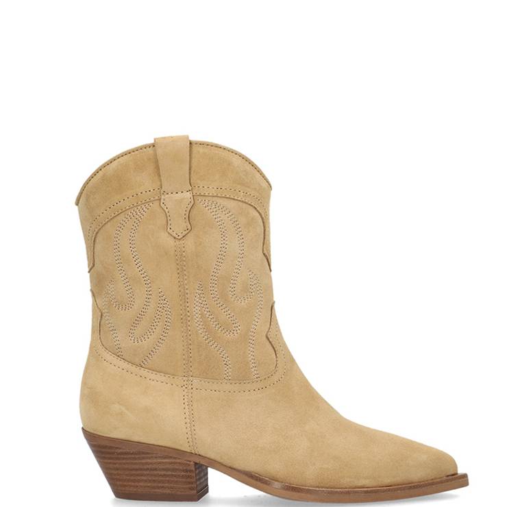 Botín estilo campero elaborado en serraje con detalle bordado. Tacón de 4,5 cm de altura. Sin cierre. Suela de goma antideslizante.