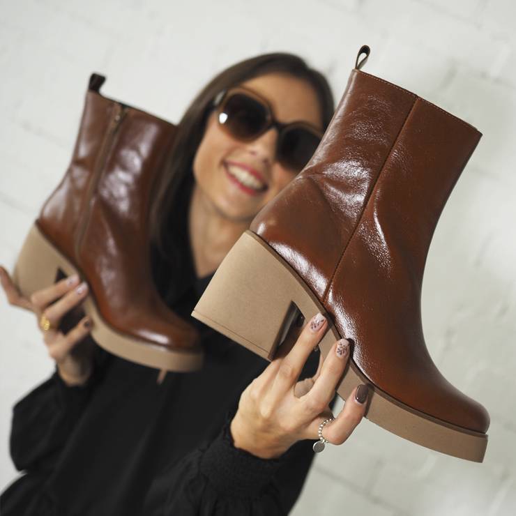 Botín de piel con cremallera en la parte interna. Con tirador en la parte trasera para mejorar la puesta.