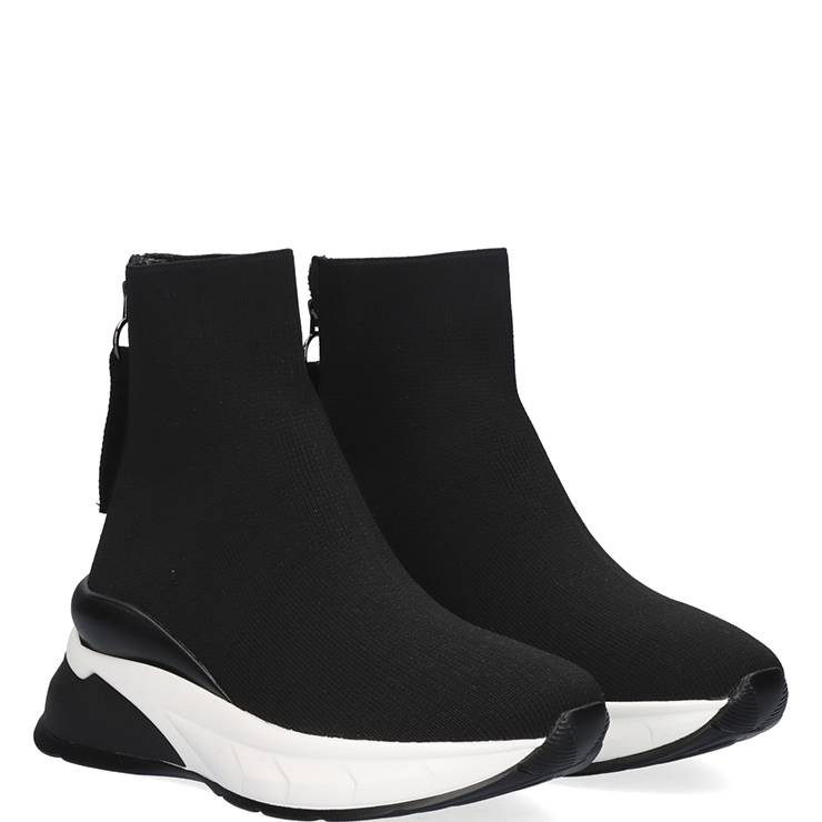 Botín deportivo elaborado en material textil. Suela de goma bicolor con cuña de 6 cm. Cierre con cremallera en la parte trasera.