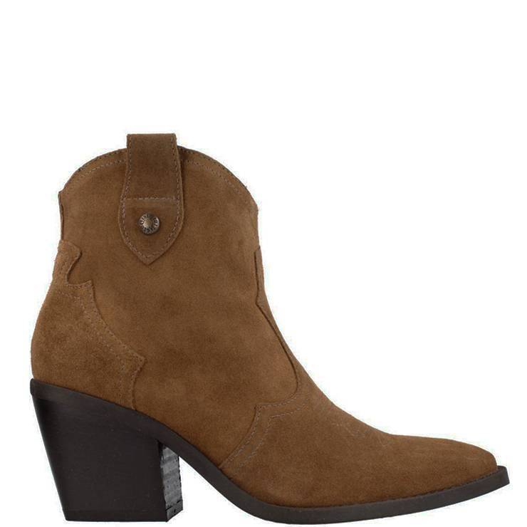 Botín tipo campero elaborado en ante. Suela de goma con tacón campero de 8 cm. Sin cierre, con tirador para facilitar el calce.