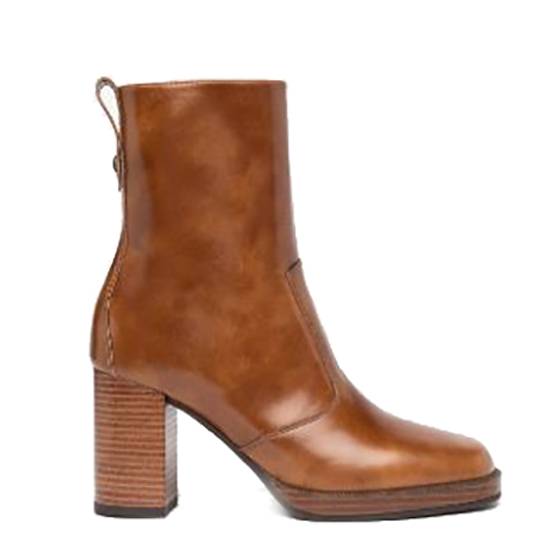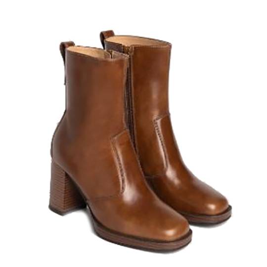 Botín de la marca Nero Giardini modelo i205062D en color cuero. Botín de tacón elaborado en piel. Forro de piel. Suela de goma con plataforma de 2 cm y tacón block de 8 cm de altura. Cierre con cremallera y tira trasera para facilitar el calce.