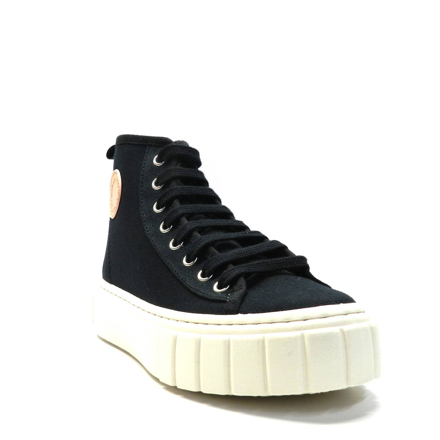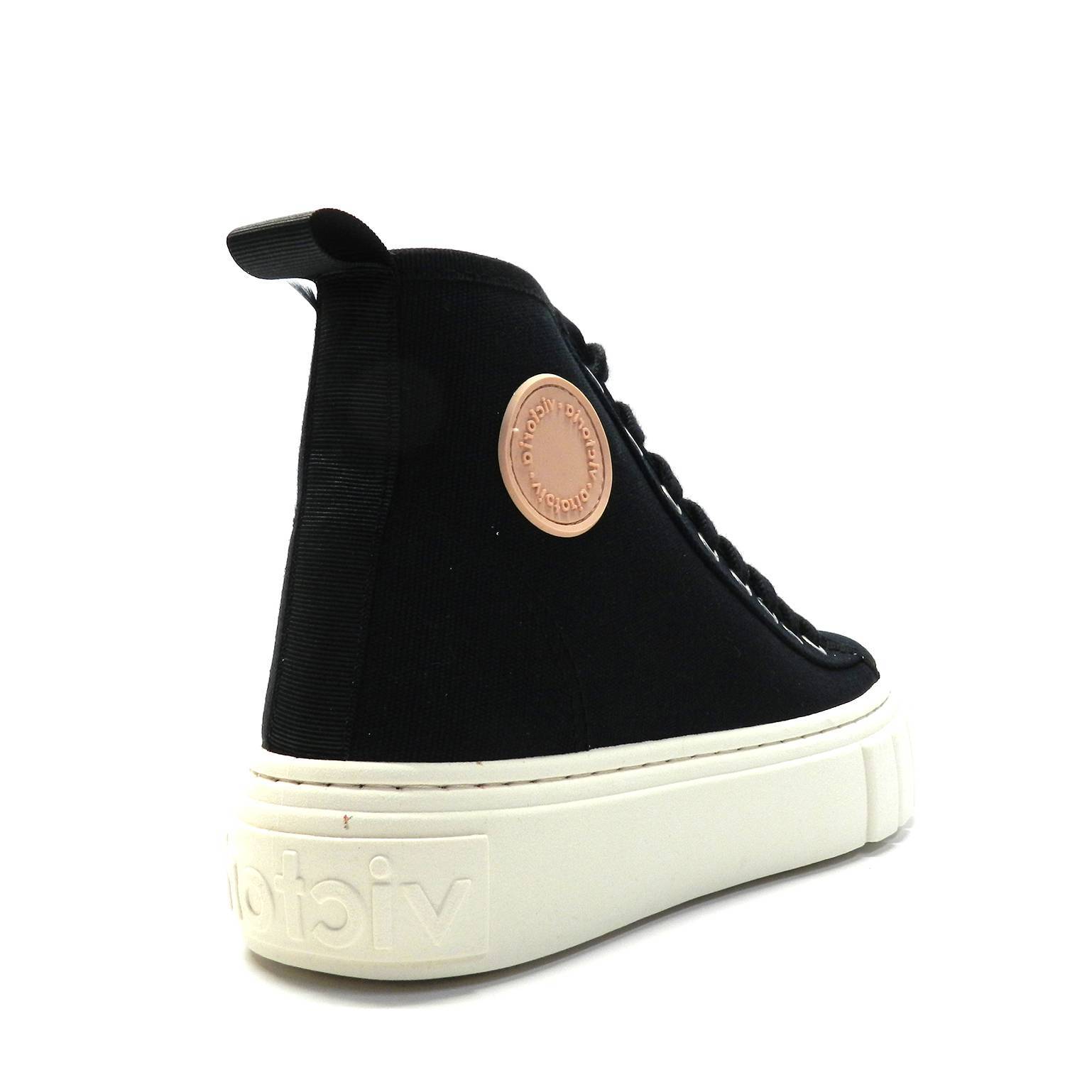 Botín de lona de la marca Victoria, modelo Abril. Estas deportivas tienen suela gruesa y están fabricadas en lona de algodón orgánico 100%. Cierre mediante cordones y tirador trasero.