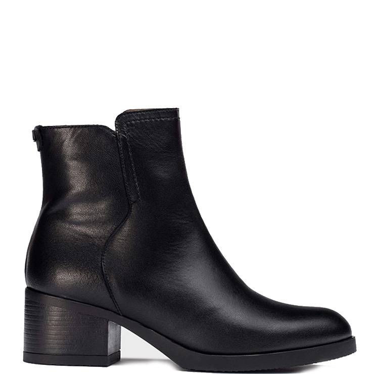 Botín elaborado en piel lisa. Punta redonda y cierre mediante cremallera lateral. Suela de goma EVA flexible. Plantilla interior de MemoryGel. Tacón de 5 cm de altura.