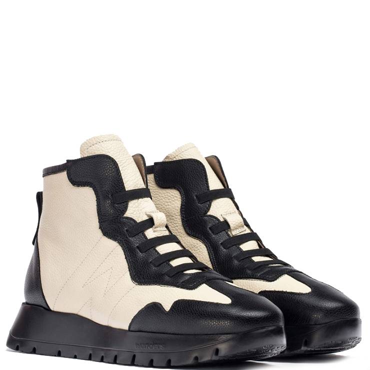 Botín deportivo elaborado en piel texturizada en combinación de beig y negro. Suela de goma EVA con 2,5 cm de altura con tecnología WondersFly™. Plantilla MemoryGel extraíble.