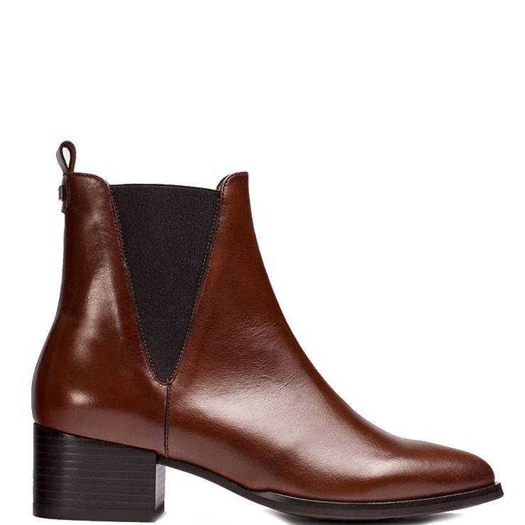 Botín elaborado en piel lisa. Punta redonda, tirador trasero. Elásticos laterales. Tacón de 4,5 cm altura. Suela de TPU flexible. Plantilla de MemoryGel.