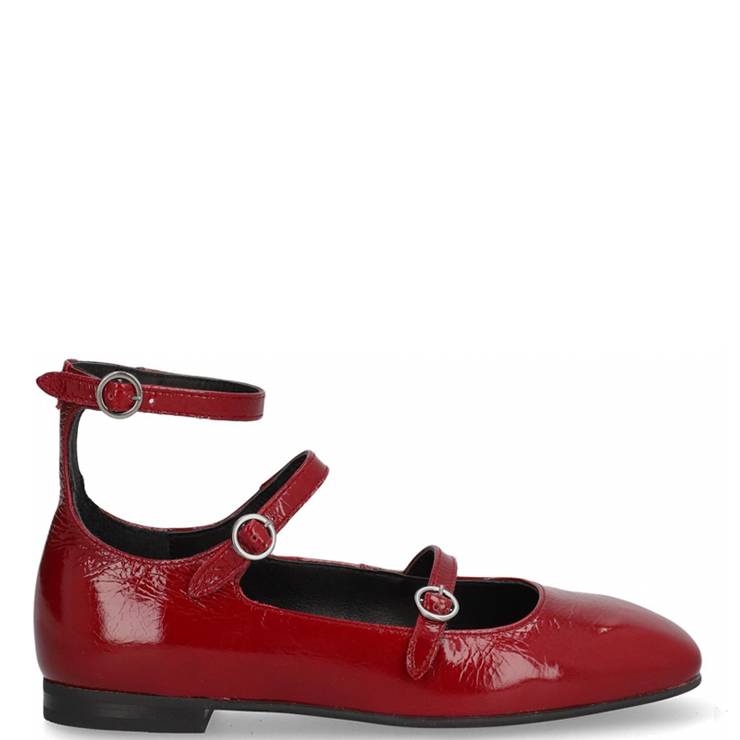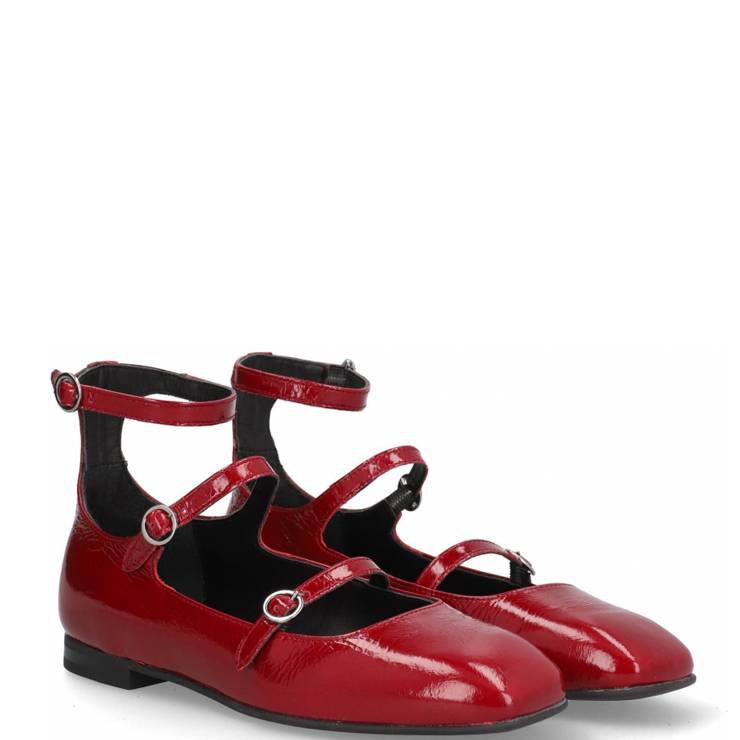 Merceditas elaborado en piel charol. Cierre con 3 hebillas y pulsera en el tobillo. Suela de goma antideslizante.