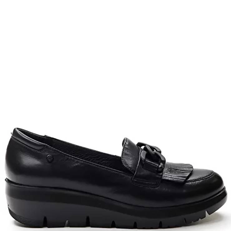 Mocasín plano elaborado en piel. Suela de goma EVA con volumen de 4.5 cm de altura. Tecnología Blusoft® que ofrece comodidad y amortiguación. Detalle de cadena al tono y flecos.