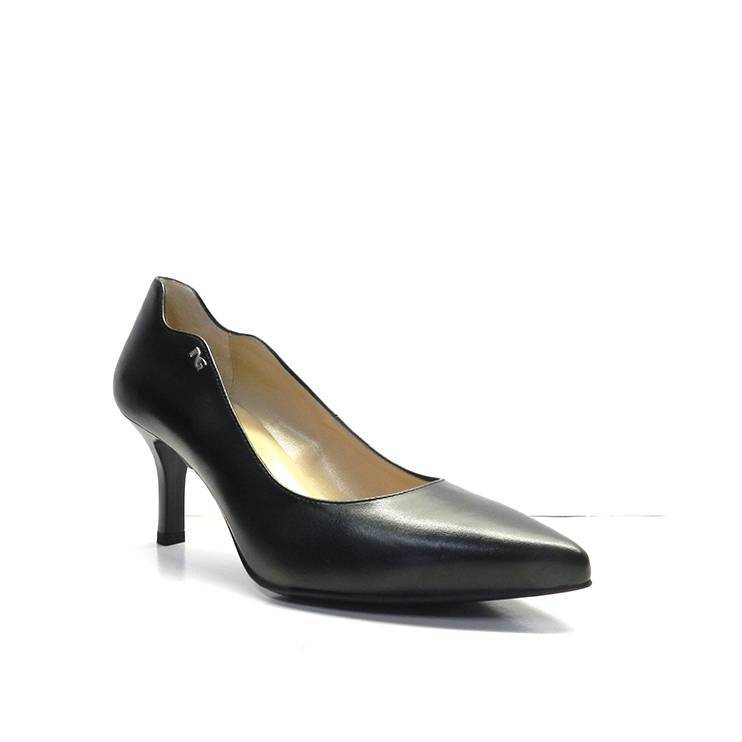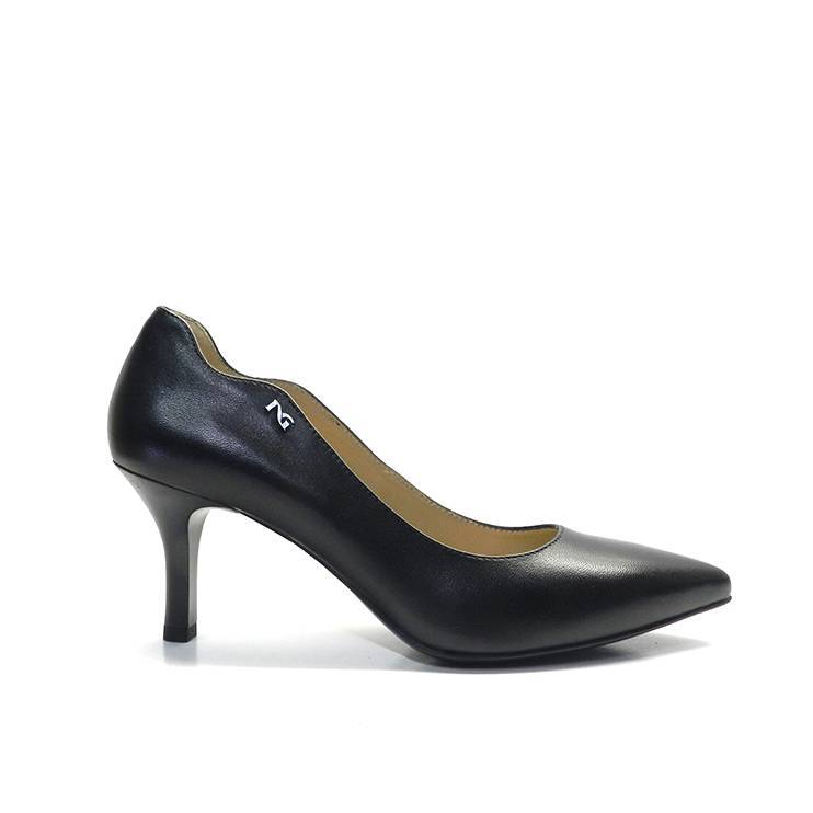 Salón de la marca Nero Giardini, de piel en color negro y con acabado ondulado. Calzado cómodo y un básico para cada armario.