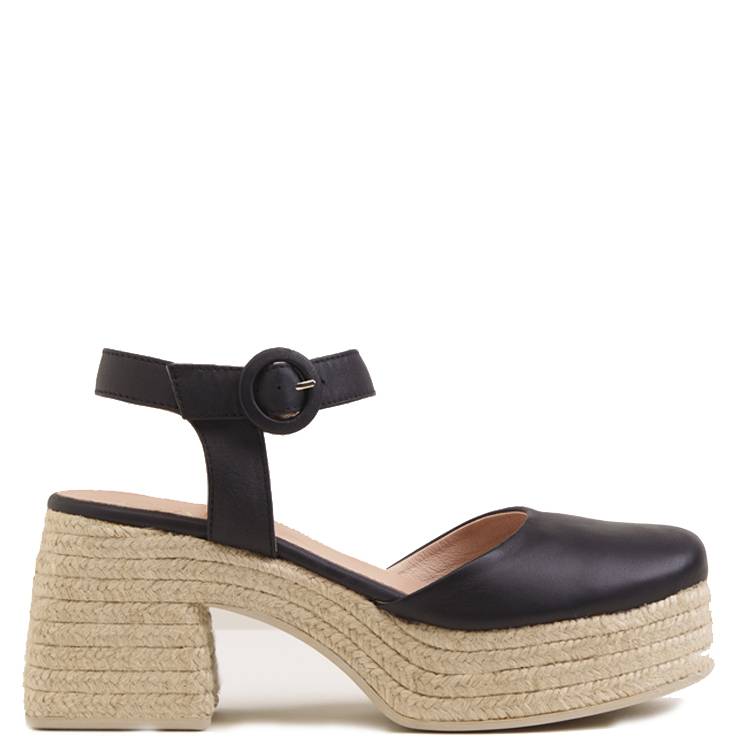 Sandalia tipo alpargata elaborada en piel napa suave. Punta cerrada y talón abierto. Cierre ajustable con hebilla forrada al tono. Plantilla acolchada de piel. Tacón ancho de yute ecológico de 8 cm y plataforma de 3,5 cm de altura.
