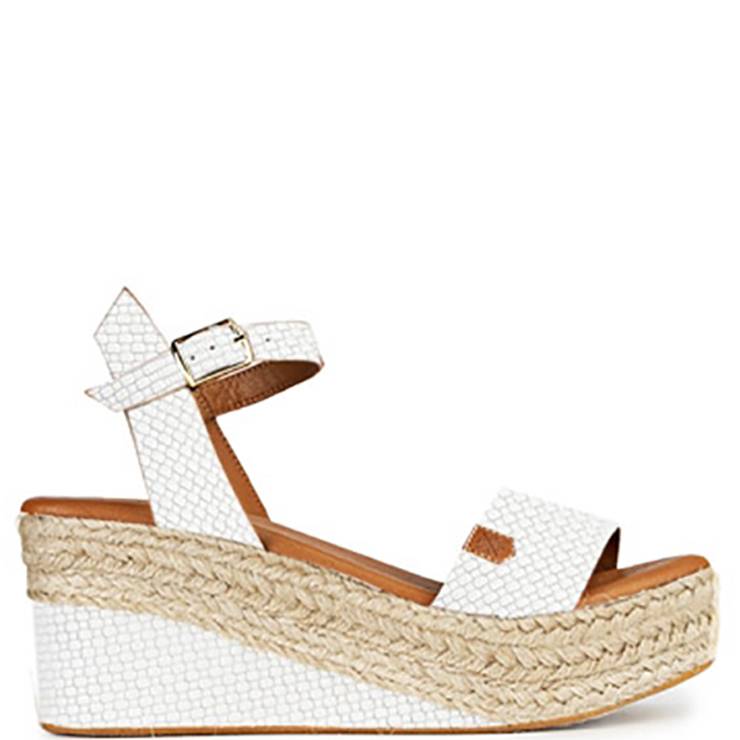 Sandalia elaborada en piel. Plantilla acolchada de piel vegana. Cierre ajustable con hebilla en el tobillo. Suela bicolor en piel y yute con plataforma de 3,5 cm y cuña de 8 cm de altura.