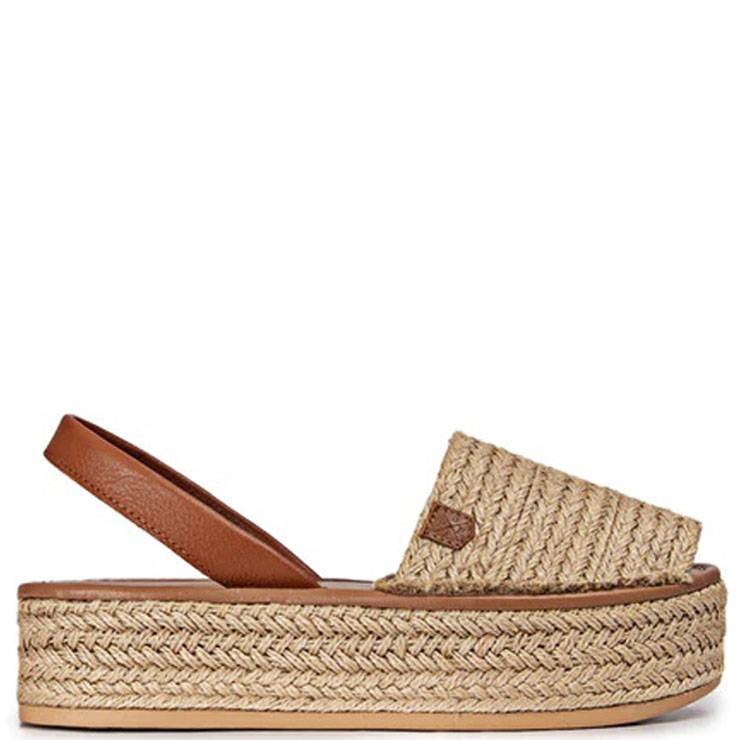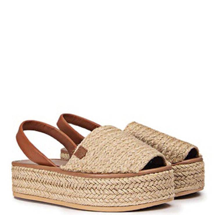 Sandalia tipo menorquina elaborada en piel y yute. Suela de plataforma de yute natural de 4,5 cm de altura. Tira trasera de piel sauvage.
