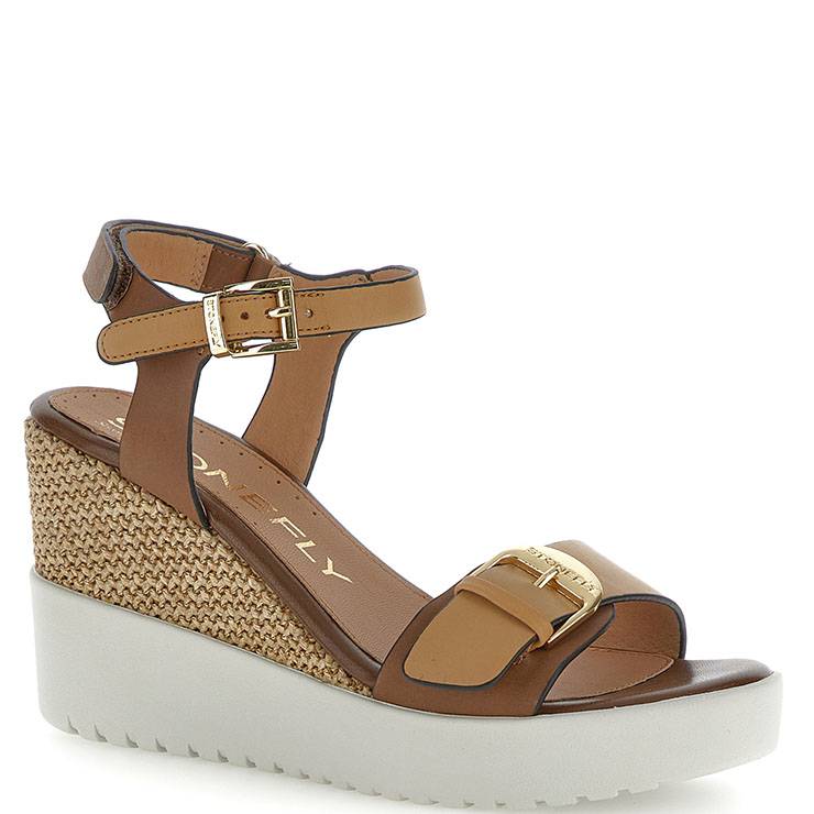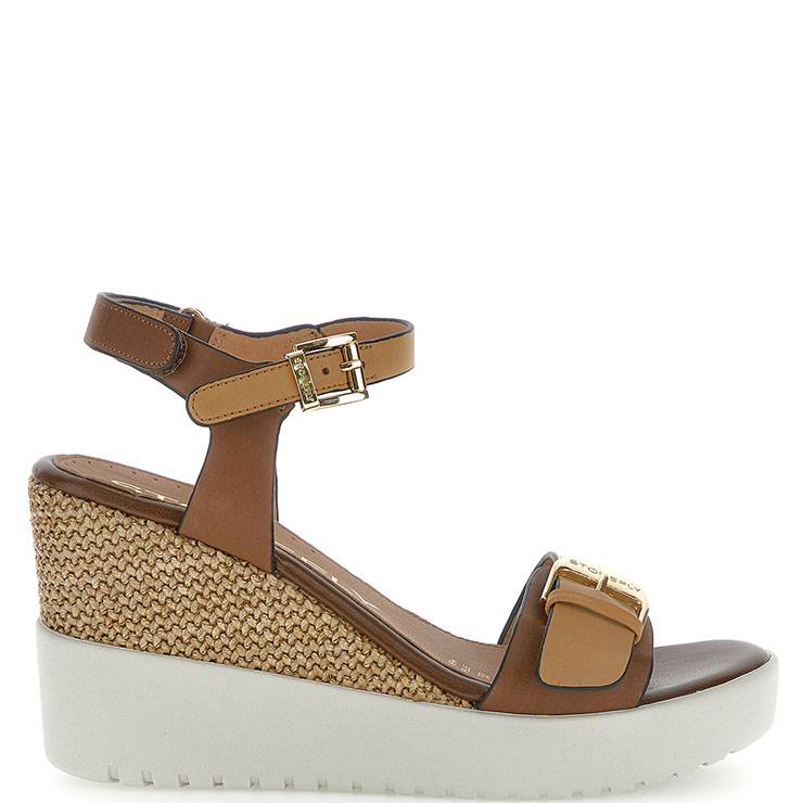 Sandalia de cuña de piel con corte slim. Correa ajustable con hebilla en el tobillo. Suela de goma EVA con cuña de 8,5 cm. Tecnología Second Skin® .