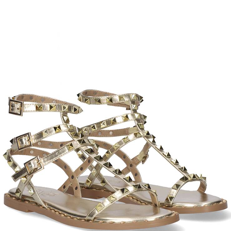 Sandalias estilo romanas elaboradas en materiales sintéticos. Detalle de tachuelas. Suela de goma antideslizante. Cierre ajustable con triple hebilla.