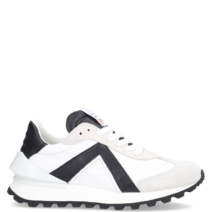 Zapatillas deportivas elaboradas en piel y nylon. Detalles en contraste en negro. Suela dentada de goma y micro reciclada de 4 cm de altura.