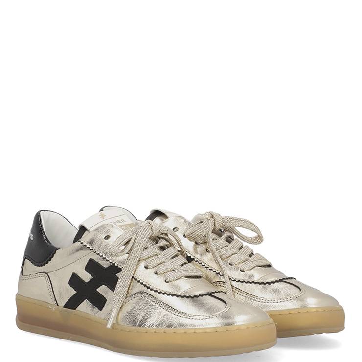 Zapatillas deportivas elaboradas en piel con detalles en piel negra. Suela de goma de 2 cm de altura. Plantilla de microfibra transpirable extraíble.