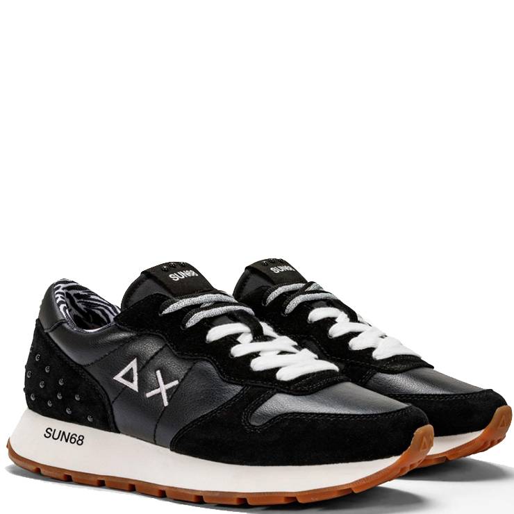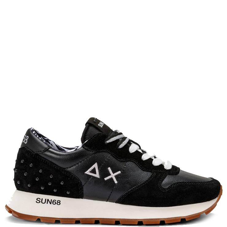 Zapatillas deportivas elaboradas en piel y ante. Detalle en contraste con tachuelas y logo en la parte trasera. Plantilla interna extraíble. Suela de goma bicolor de 4 cm de altura.