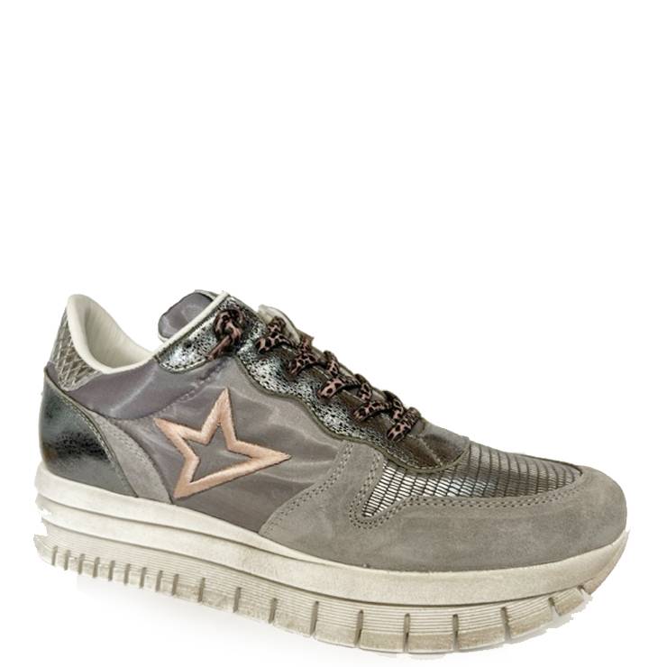Zapatilla deportiva con plataforma elaborada en piel en combinación de materiales. Cierre con cordones y logo de estrella en el lateral.