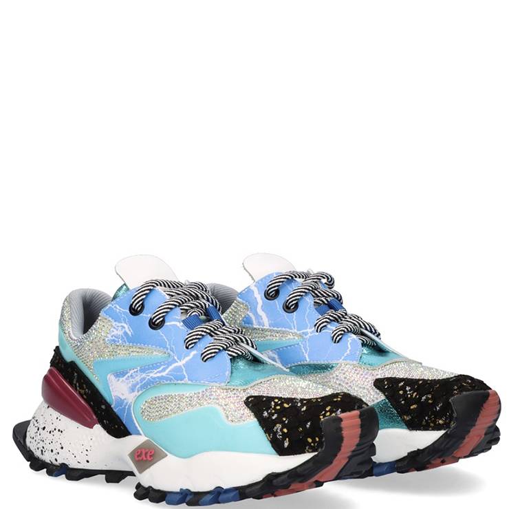 Zapatillas deportivas elaboradas en piel. Detalles decorativos brillantes y metalizados. Plantilla de piel. Cuenta con cierre de cordones. Suela de goma con 4 cm de plataforma. Refuerzo en el talón para una mayor estabilidad.