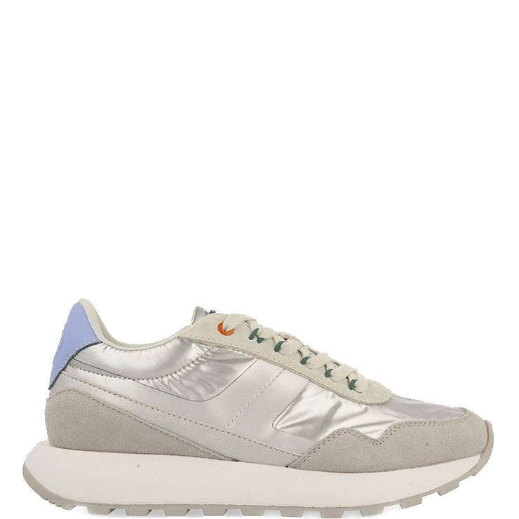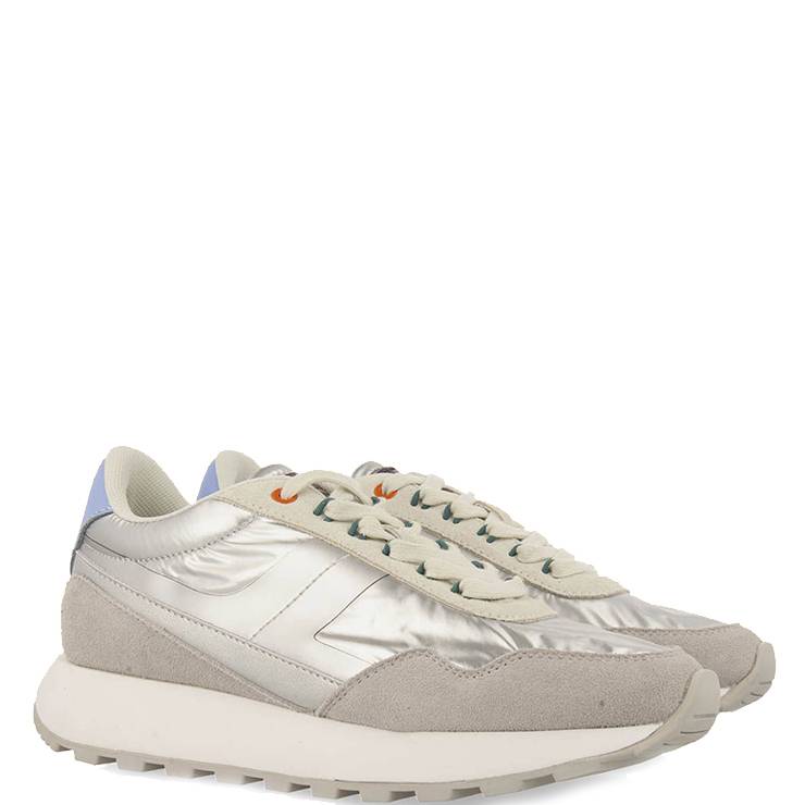 Zapatilla deportiva elaborada en ante y nylon metalizado. Detalles en contraste. Suela de EVA inyectada. Plantilla anatómica, extraíble y sistema Gio Memory Effect.
