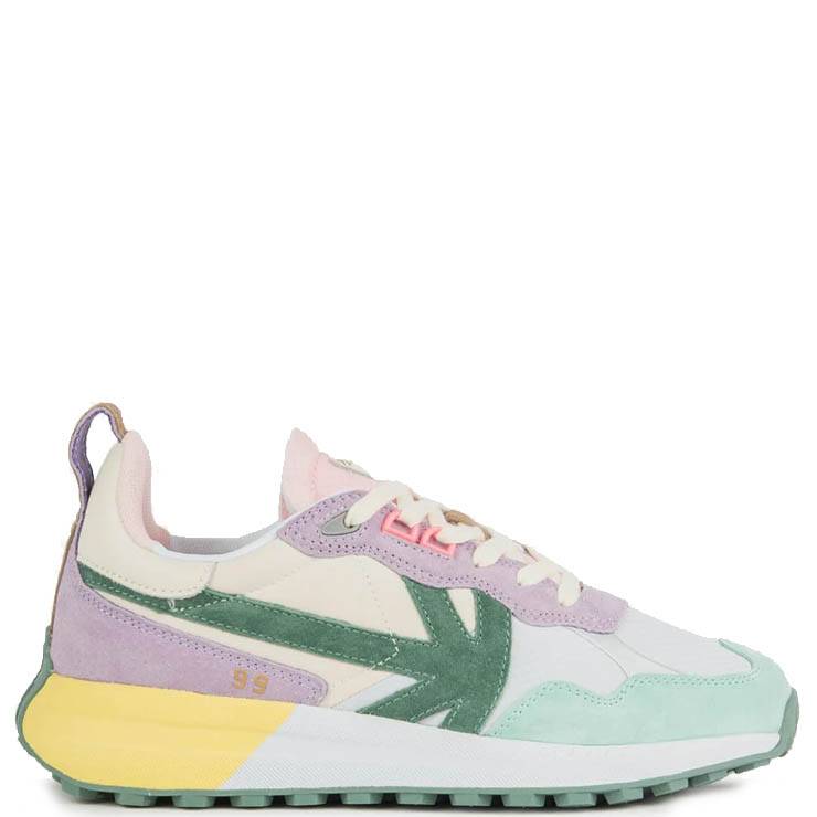 Zapatillas deportivas elaboradas en combinación de piel y textil en diferentes colores. Suela de goma bicolor.