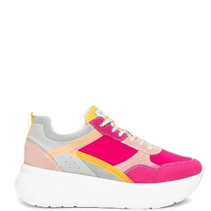 Zapatillas deportivas elaboradas en material textil y piel. Plantilla DryGo!. Suela de goma blanca con plataforma de 5 cm.