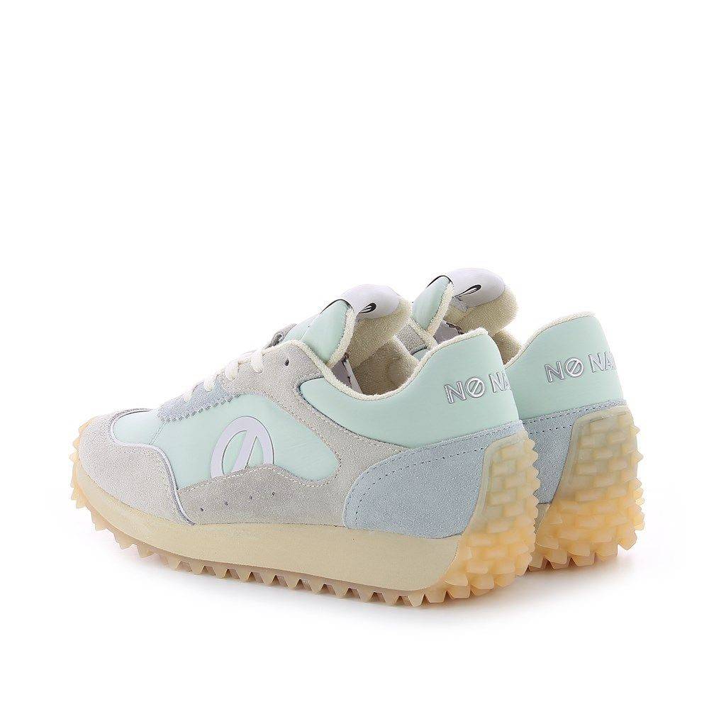 Zapatillas de la marca No Name, modelo Punky Jogger en color azul cielo. Zapatillas deportiva muy urbana, en combinación de materiales de ante y nylon. Detalles en gris y azul claro y logotipo en el lateral en gris azulado. Plantilla extraíble. Suela de muescas en goma con plataforma de 3 cm de altura.