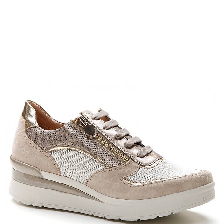 Zapatillas deportivas elaborado en combinación de ante y piel con acabado metalizado. Cierre mediante cordones y cremallera lateral.