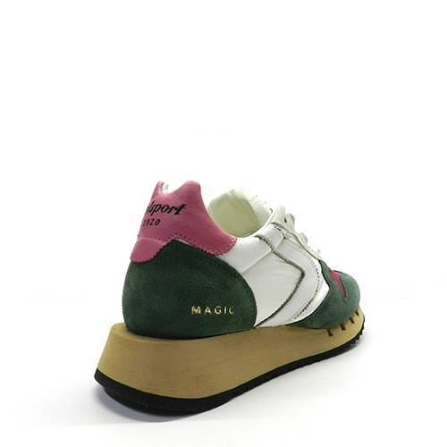 Zapatillas de la marca Valsport, modelo Run en color verde. Zapatillas deportivas elaborada en lona de nailon, ante y lona de malla. En combinación de colores verde, blanco y rosa. Forro interior y cordones en algodón. Original microsuela.