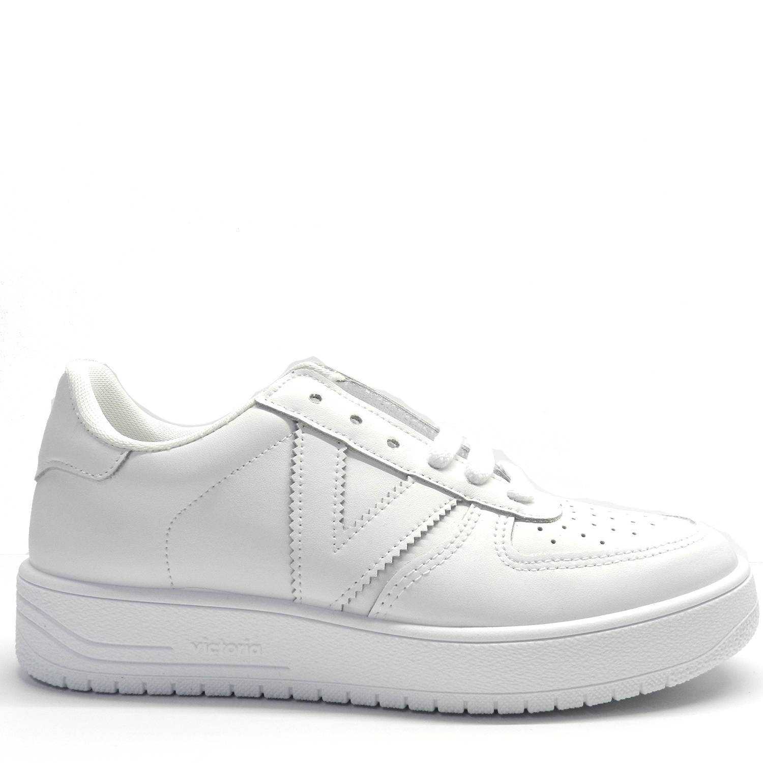 Zapatillas de la marca Victoria, modelo Siempre en color blanco. Zapatillas deportivas de piel, con logo en el lateral y puntera perforada para favorecer la transpiración. Suela gruesa de gran comodidad.